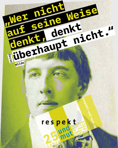 Unter dem Motto „Mut zum Widerspruch - Respekt dem Eigensinn“ haben wir für eine besondere Plakataktion zum 25. Respekt-und-Mut-Jubiläum sechs Zitate von bekannten Persönlichkeiten ausgewählt, die uns geistig und kulturell angeregt haben und gut zu den Intentionen von „Respekt und Mut“ passen.